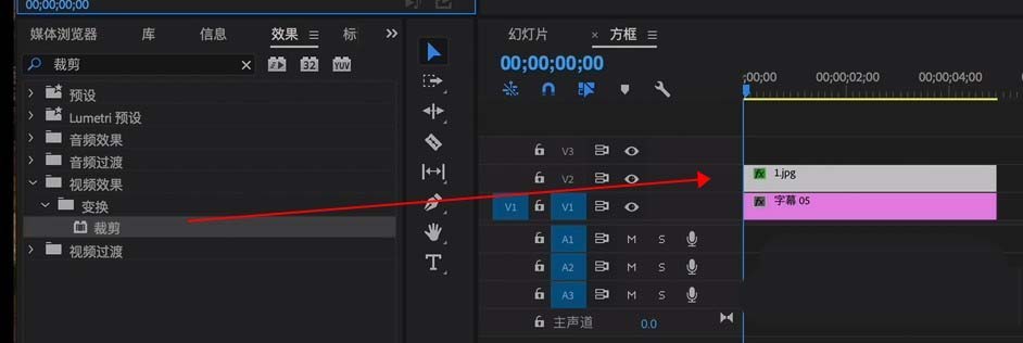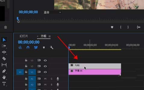 3、再新建序列,繪制方框并添加文字,把圖片托至方框的上方