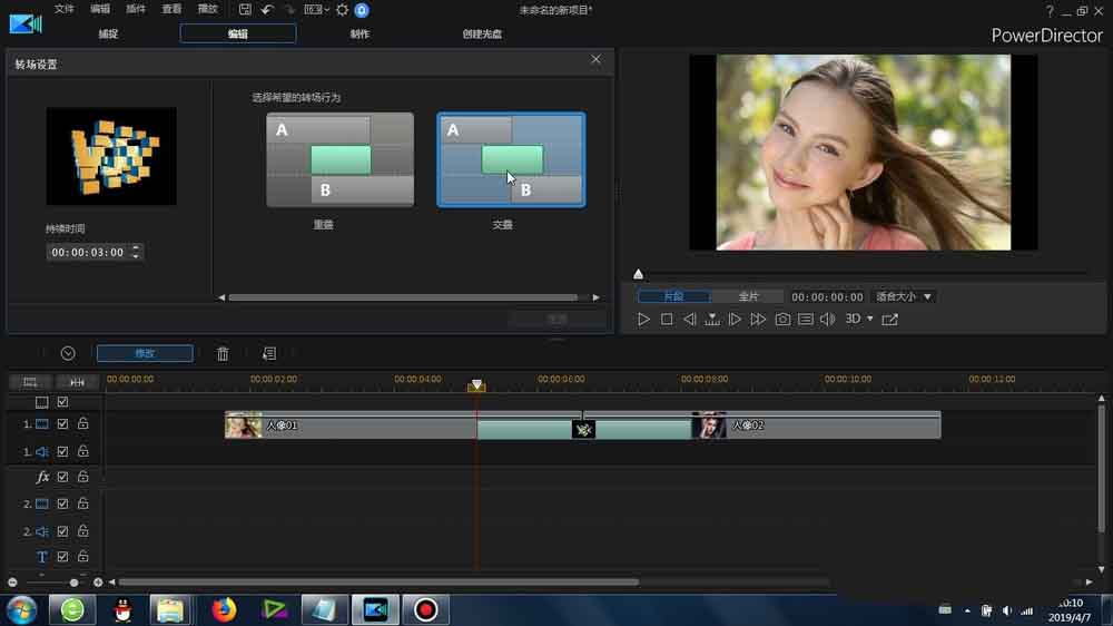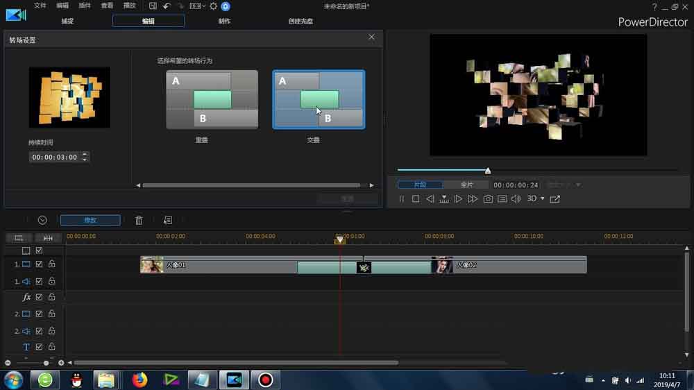 威力導(dǎo)演素材怎么添加中間擦除轉(zhuǎn)場(chǎng)效果?