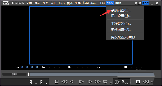 1、我們打開EDIUS軟件,進(jìn)入到EDIUS的工作界面,點(diǎn)擊界面上方的【設(shè)置】