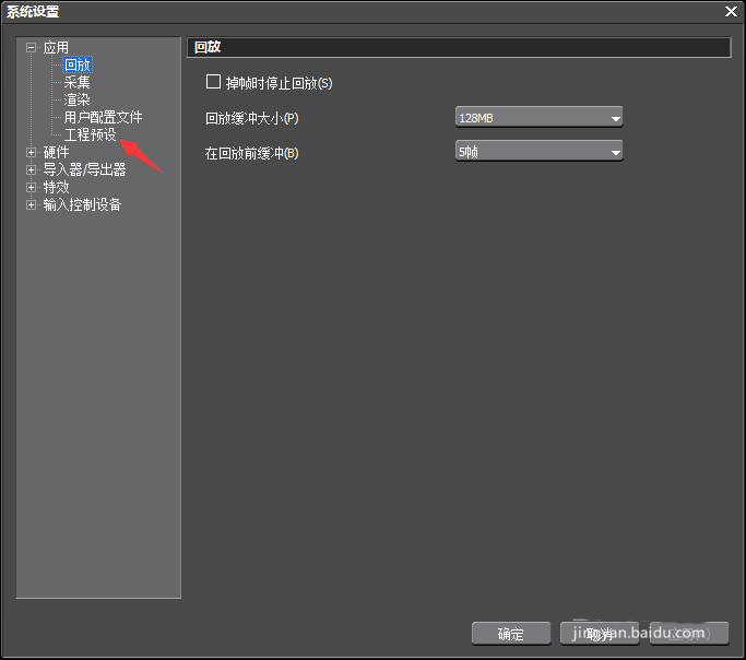 3、在打開的EDIUS系統(tǒng)設(shè)置窗口中,我們點(diǎn)擊窗口左側(cè)的【工程預(yù)設(shè)】選項(xiàng)