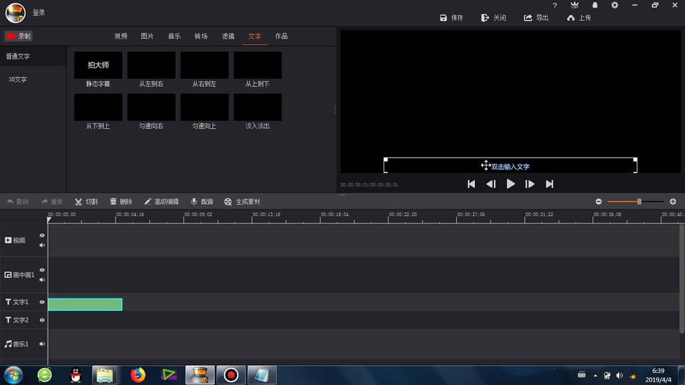1、最開始的就是找到這個靜態字幕效果的位置,是在拍大師的-文字-基本文字-里面