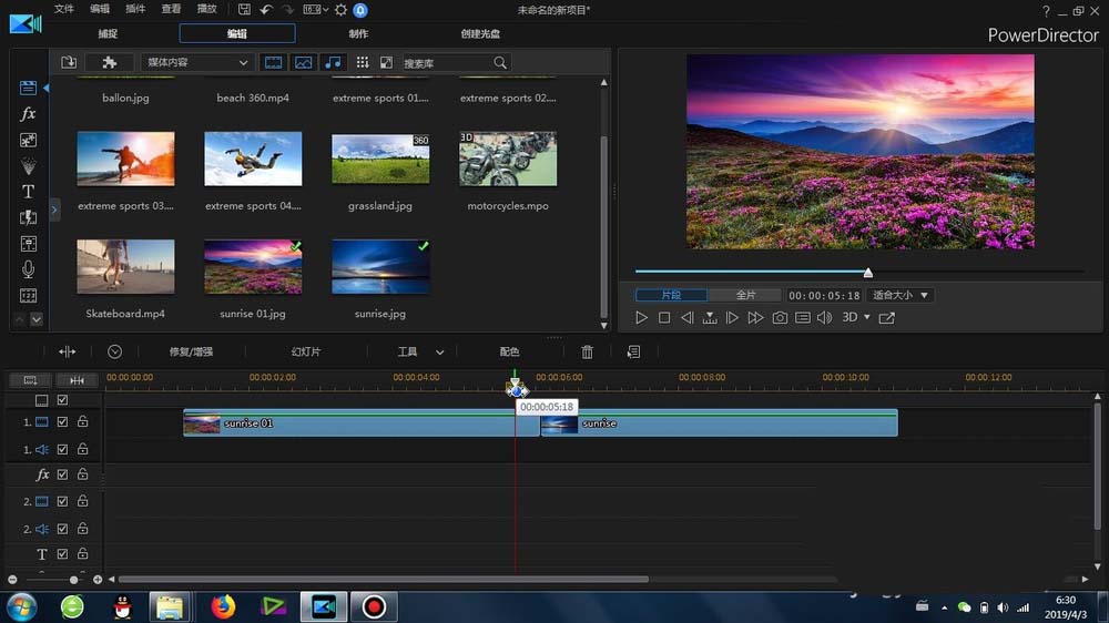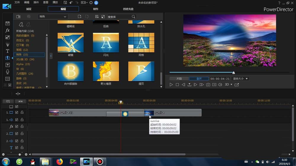 威力導演怎么給素材添加彩色圓圈轉場效果?