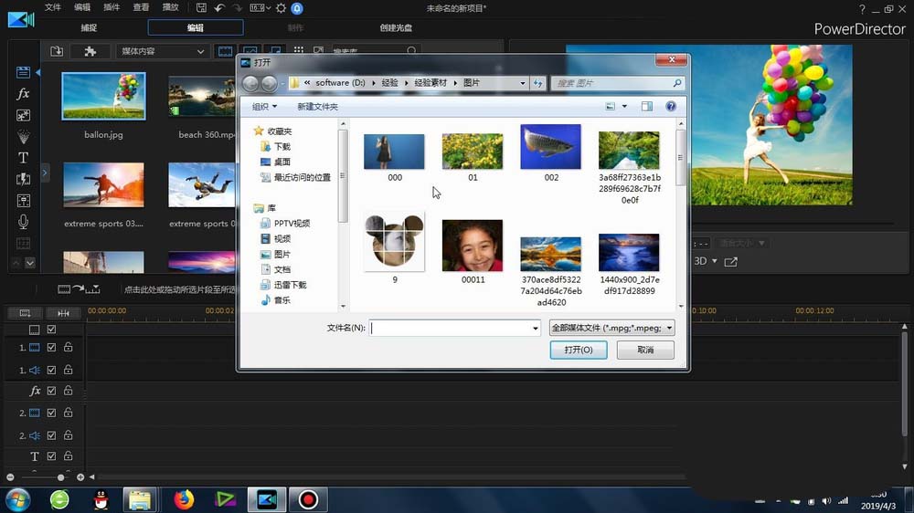2、接下來就是到導入我們的圖片或者是視頻素材