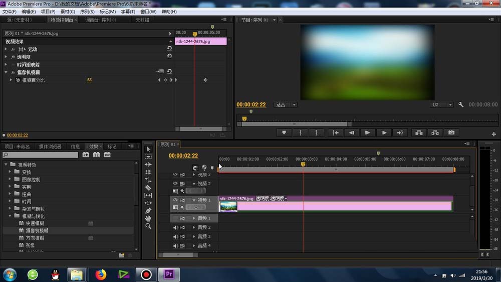 4、再有就是找到“攝像機模糊”功能,將其添加到素材上,這樣最基本的效果就產生了