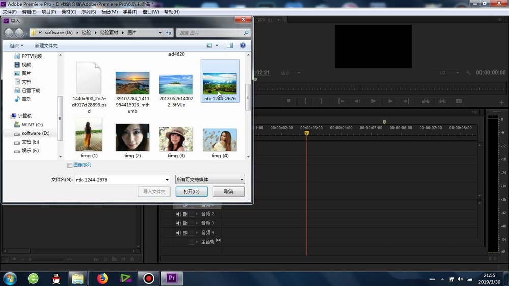 2、再有就是將速到進行導入素材庫(圖片或者視頻都可以)
