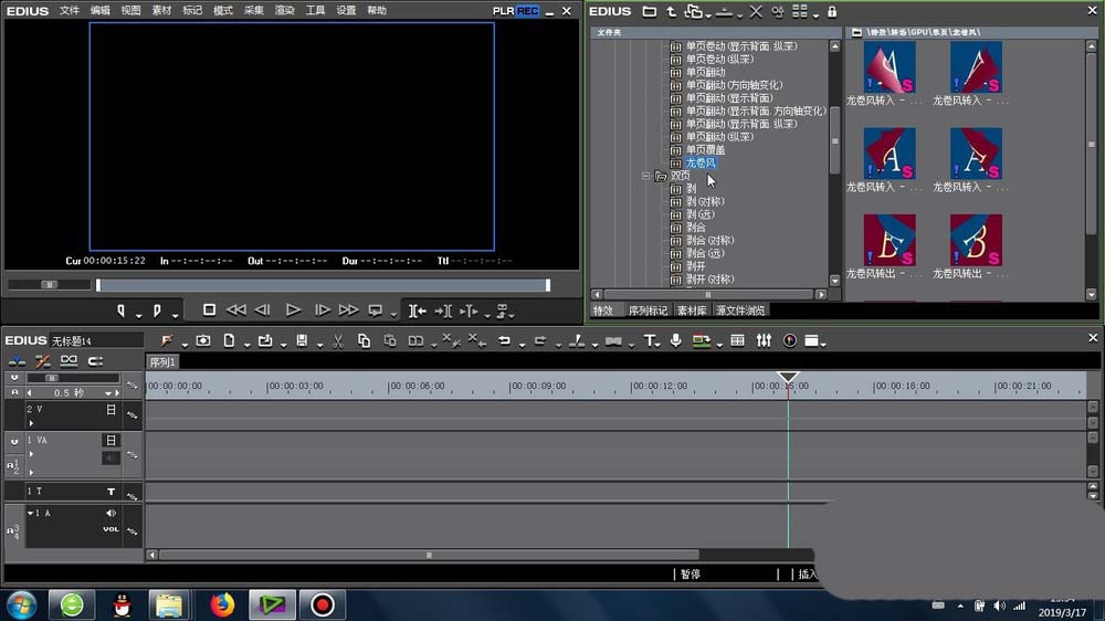 1、首先就是“龍卷風(fēng)效果”的位置是在特效里面的-轉(zhuǎn)場(chǎng)-GPU-單頁(yè)-里面,里面有幾種類似的效果(大同小異)供我們挑選使用