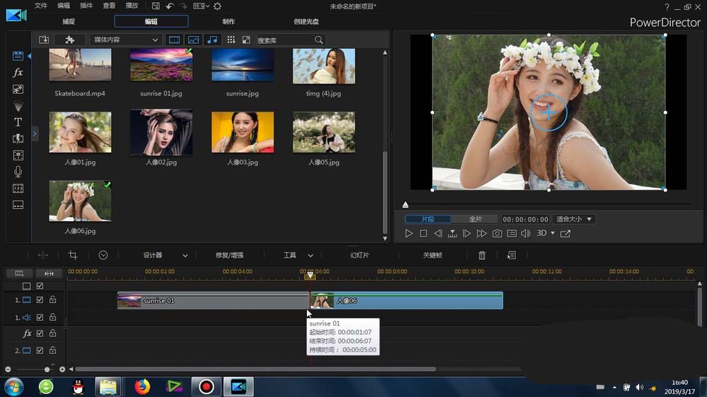 3、導入之后的素材,點擊+號導入到威力導演的時間線視頻軌道上,保證首尾相連