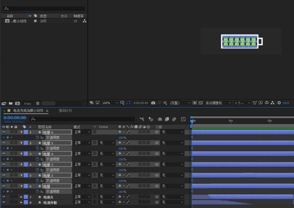 以上就是AE制作一個電池充電加載的動畫效果的教程,希望大家喜歡,請繼續關注武林網。