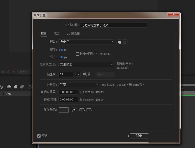 1、打開AE,新建合成(CTRL+N),命名,填寫好對應的參數.