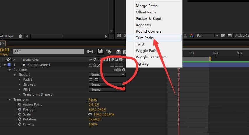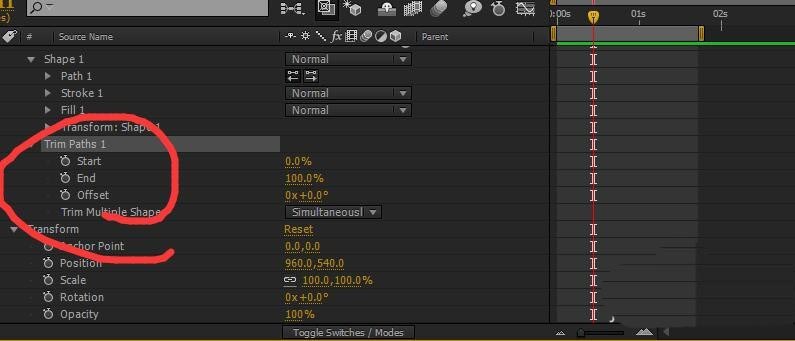 3、打開修建路徑的動畫屬性,主要就是這兩個屬性