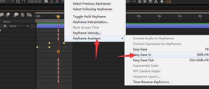 5、我們選擇關鍵幀,讓其在動畫上有所變化