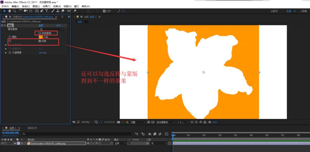 6、在效果控件的填充效果設(shè)置中,還可以勾選反轉(zhuǎn)與蒙版,來設(shè)置不一樣的填充效果。大家都可以試一試。