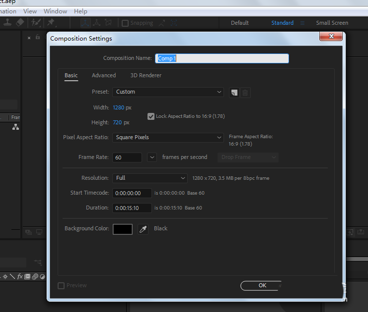 2、新建一個合成,然后設置一下合成的時間段。