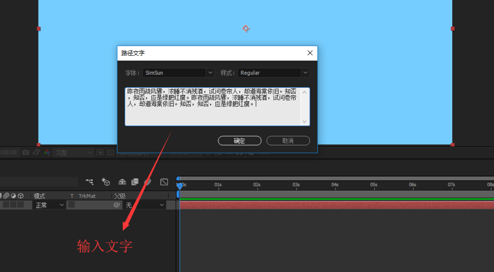 5、單擊路徑文本之后,會(huì)打開(kāi)路徑文字窗口,在路徑文字中輸入文本內(nèi)容,這里我就隨意輸入了一些文字。點(diǎn)擊確定。