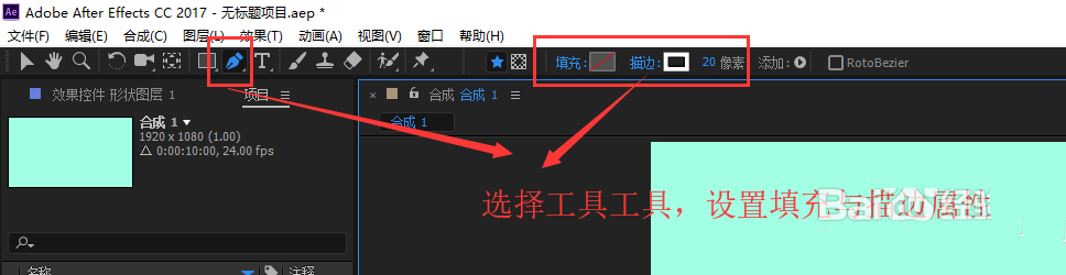 2、選擇工具欄中的鋼筆工具,設置好鋼筆工具的填充與描邊的屬性,這里填充設置無填充顏色。