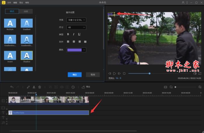 5、雙擊文字素材可以更改內容,樣式等。然后在動效里選擇從左到右滾動,或是從右到左滾動。