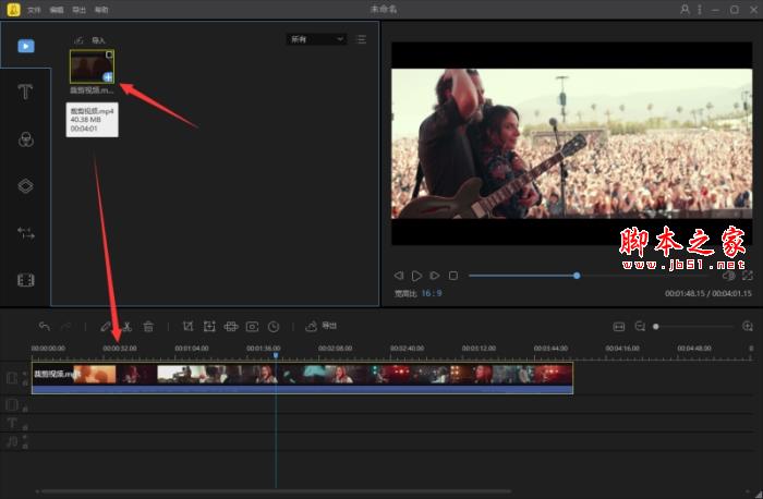 3、導入你的視頻文件,點擊視頻素材中的“+”將素材添加到軌道上。