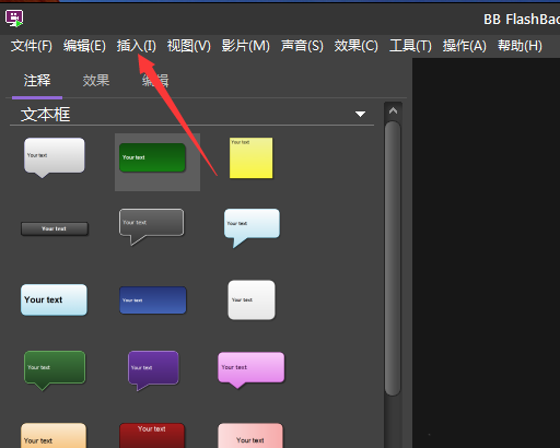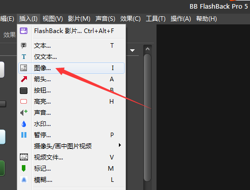 2、點擊了的BB FlashBack的菜單中的插入的選項。