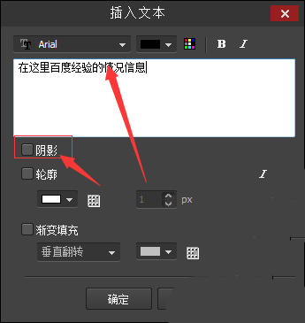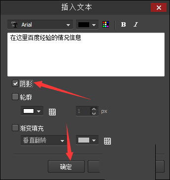 5、輸入框中文字輸入完成之后,勾選上陰影的選項。