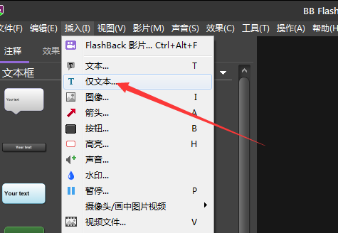 2、點擊了的BB FlashBack的菜單中的插入的菜單。