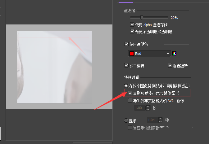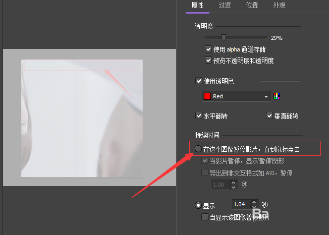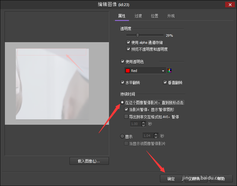 3、進入到了編輯圖像界面當中,勾選上 在這個圖像暫停影片知道鼠標點擊 的選項。