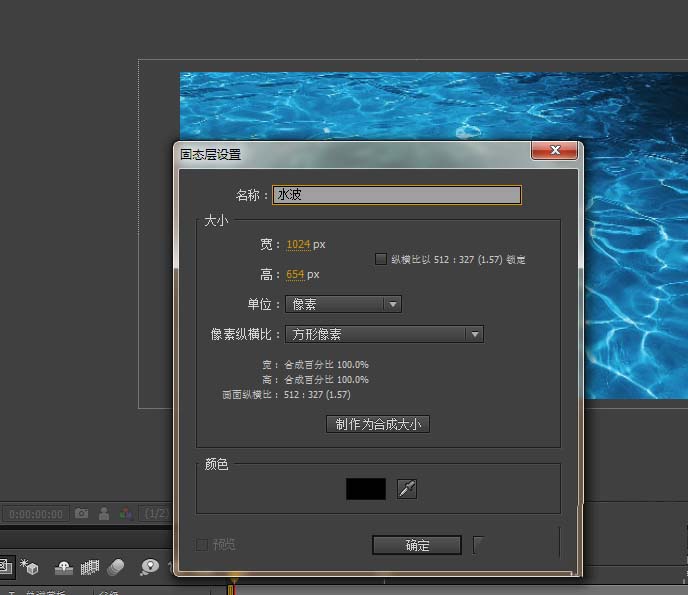 2、新建一個固態層,并且命名為水波,給水波固定層添加分形噪波的效果