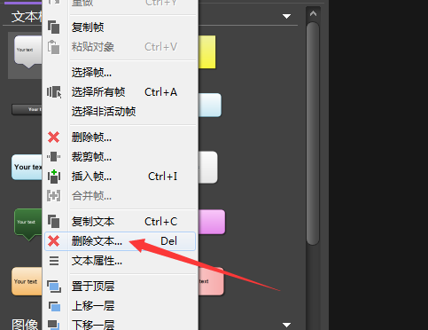 5、點擊了編輯的菜單之后,彈出了下拉菜單選中為刪除文本的選項。
