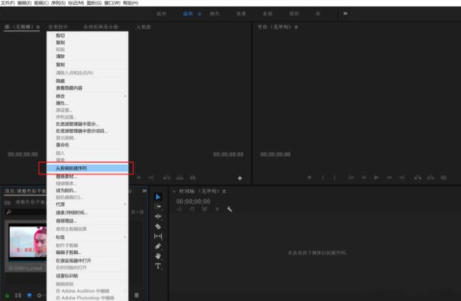 導入視頻素材,鼠標右鍵單擊視頻,點擊“從剪輯新建序列”,