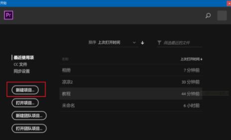 打開Premiere軟件,進入界面,點擊“新建項目”,