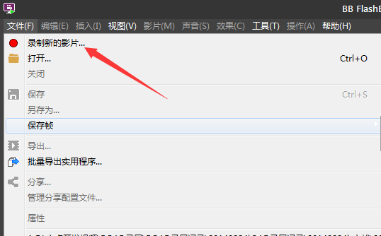 1、首先,打開打開一個的BB FlashBack的進入界面中,點擊菜單中的 文件之后,彈出了下拉菜單選中為錄制新的影片的選項。