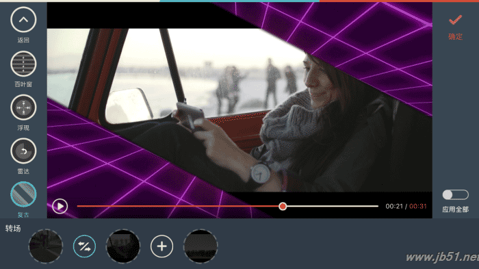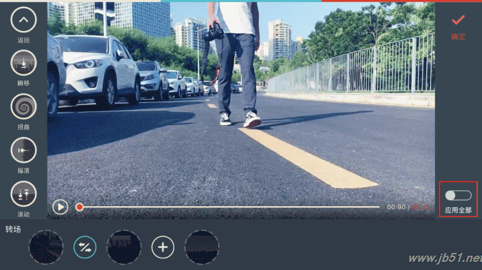 點擊右上角“確定”按鈕即可完成添加轉(zhuǎn)場特效。