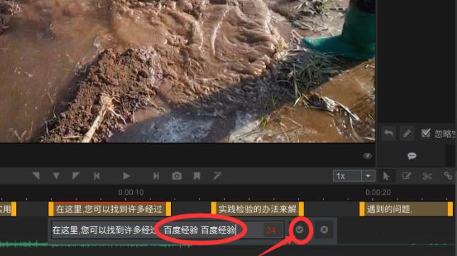 在下面會出現一個小的編輯框,我們可以對字幕內容進行編輯修改,修改之后,記得點擊對勾進行保存。