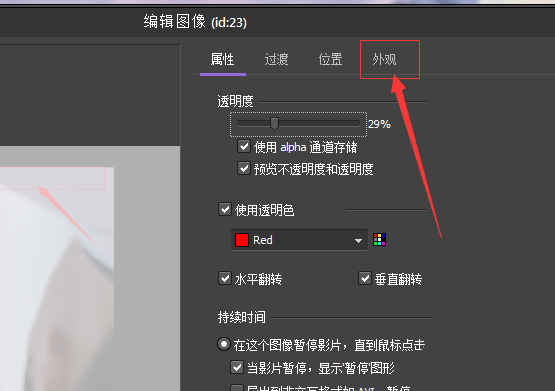 2、就會彈出編輯圖像的窗口中,點擊外觀的選項。