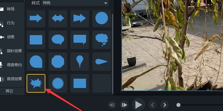 本文就以傳統樣式為例,選擇一個形狀,把它放到時間軸上,注意,不能把它和視頻方在一個軌道,