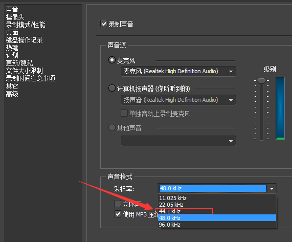 5、點擊了采樣率的選項之后,彈出了下拉菜單選中為一個采樣率的選項。