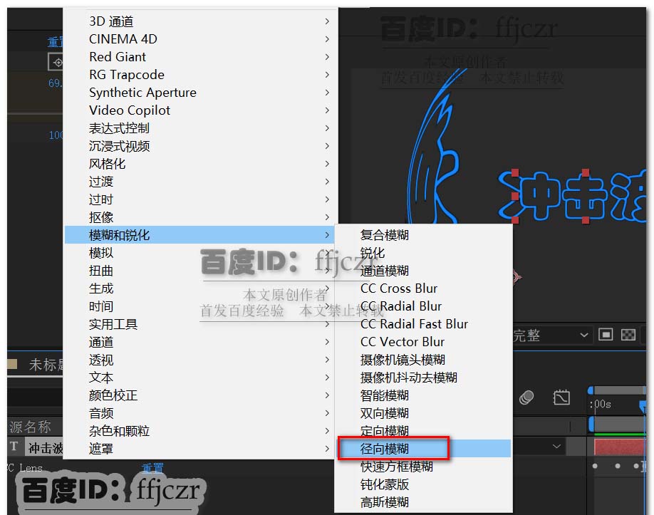 5、給文字層再次添加效果模糊和銳化中的徑向模糊。