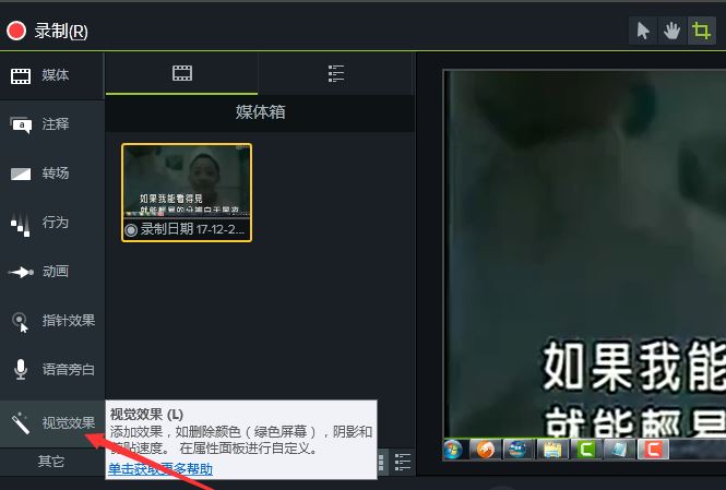 在左側(cè)工具欄中點(diǎn)擊“視覺(jué)效果”選項(xiàng),如果找不到、點(diǎn)擊最下面的“其他”,就會(huì)顯示出來(lái)了,