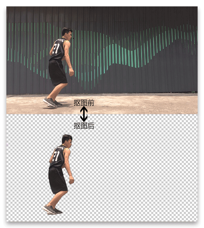 摳圖前后如圖6所示,摳圖完成之后把當(dāng)前圖片存儲(chǔ)為為格式為png,并且背景是透明的圖片,其他截圖也是如此處理。