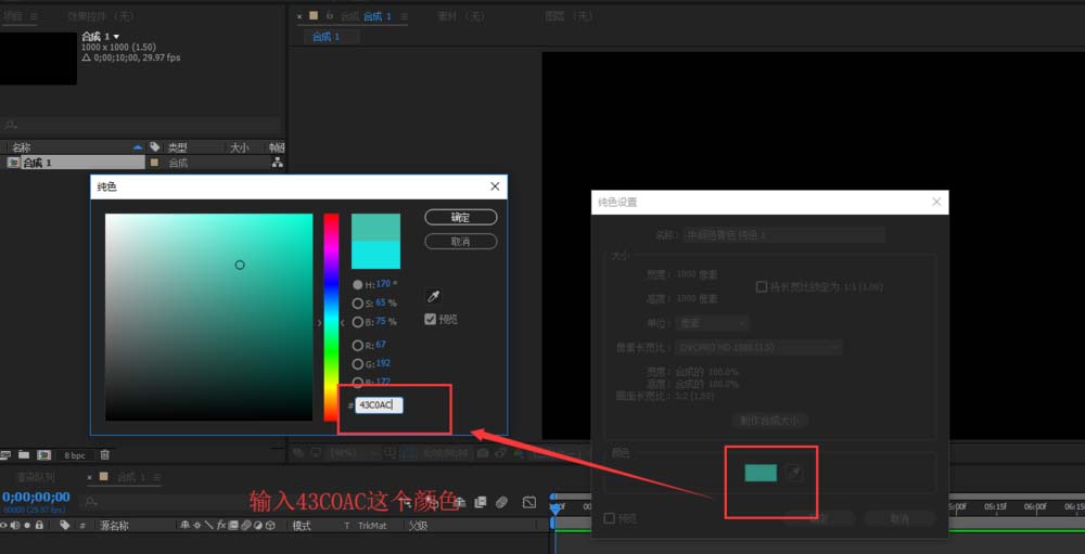 2、在圖層菜單中選擇新建命令,然后在圖層菜單的新建選項中選擇純色,然后在彈出的純色設置窗口中設置純色的顏色為“43C0AC”,為其設置這個純色顏色。