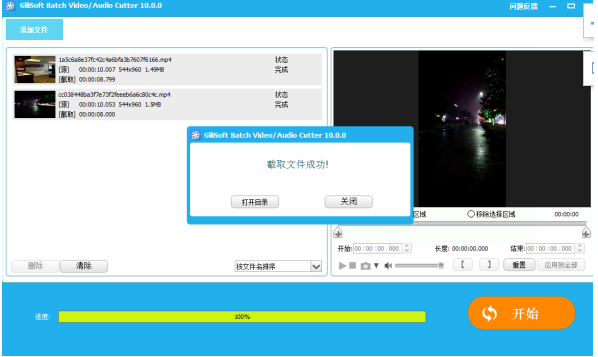 點擊“瀏覽”,選擇視頻存儲路徑,點擊開始就會自動保存,最后提示截取成功。