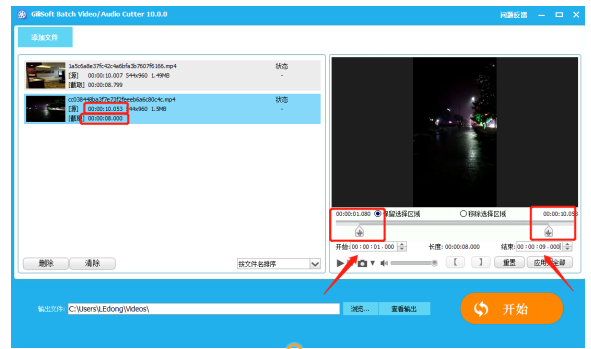 兩個視頻可以一起截取,同樣是十秒的視頻、截取八秒,
