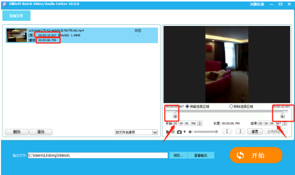 視頻時長是十秒,在右側面板中拖動進度條進行截取,從左側面板中可以看到截取了八秒時長,