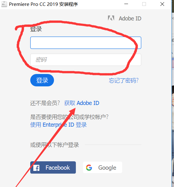 3、安裝完之后,會(huì)跳出登陸界面,如果你沒有Adobe公司賬號(hào)的,你就點(diǎn)擊獲取ID,就像我們使用微信一樣,是要注冊(cè)一個(gè)賬號(hào)的。如果你用過Adobe公司軟件的,肯定是有賬號(hào)的,就直接登陸就可以了。