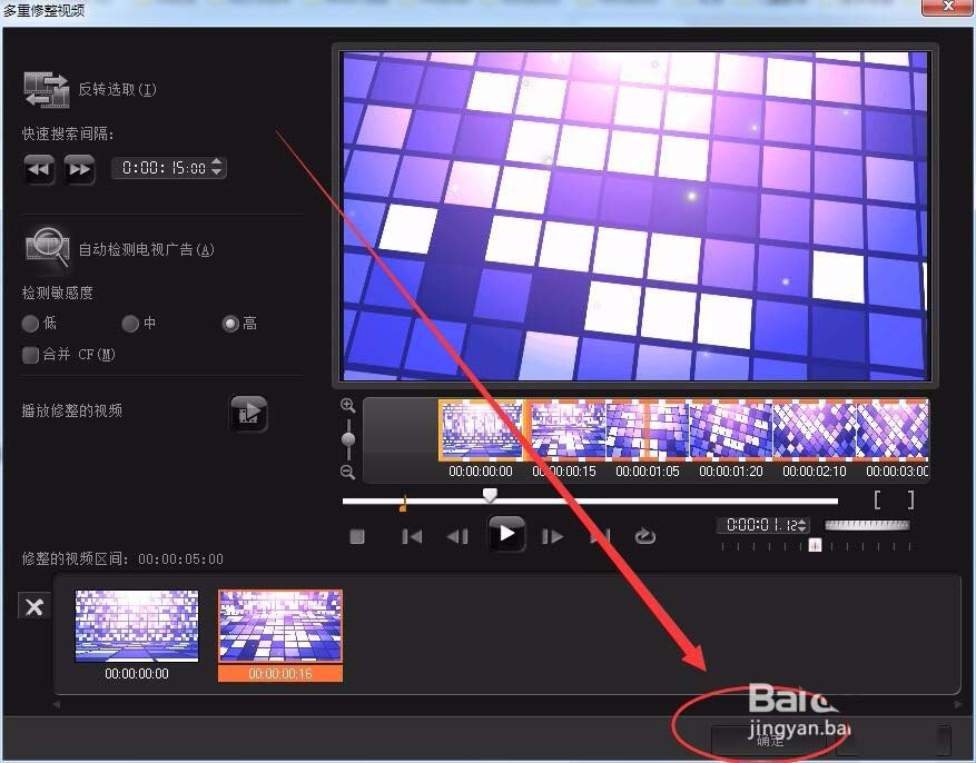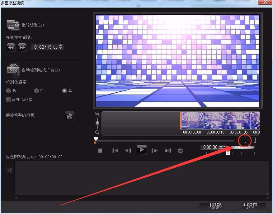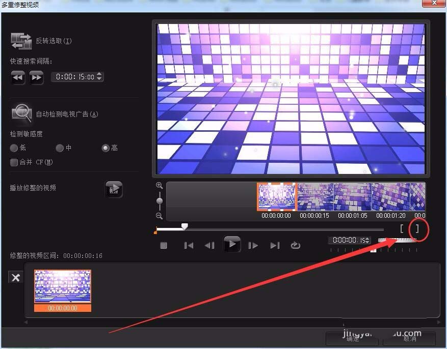 7、用結束標記選擇要保留視頻的結束幀,選取一段視頻。