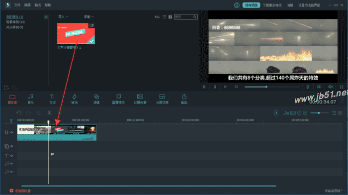 1、向多媒體庫導入一張圖片,將圖片拉到時間軸上,更改圖片時長,這樣可以決定圖片遮蓋抖音ID的時間。