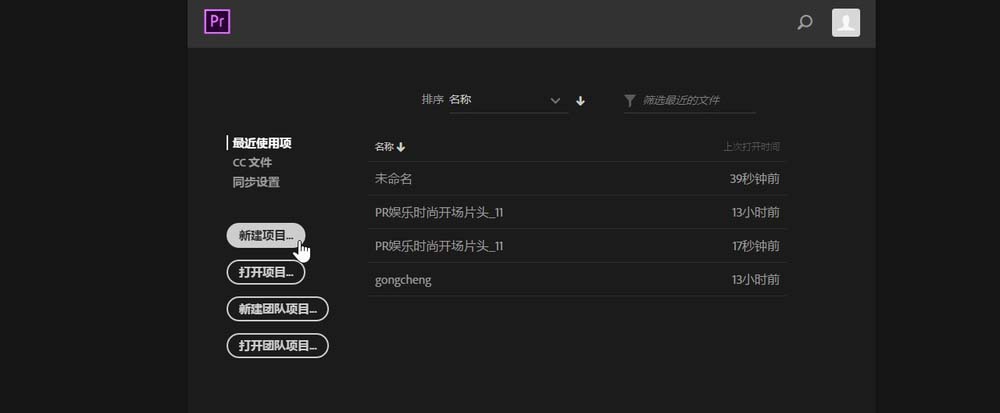 2、打開 Adobe Premiere Pro CC 2018之后,點擊頁面左側列表中新建項目