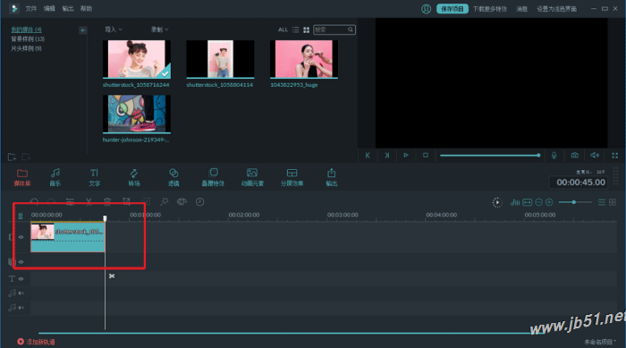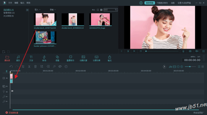 1、我們將已導入資源庫的照片用鼠標左鍵單擊進行拖曳到時間軸中。