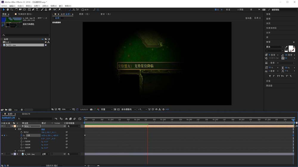 1、首先我們打開ae導入素材創建序列,并新建燈光圖層。