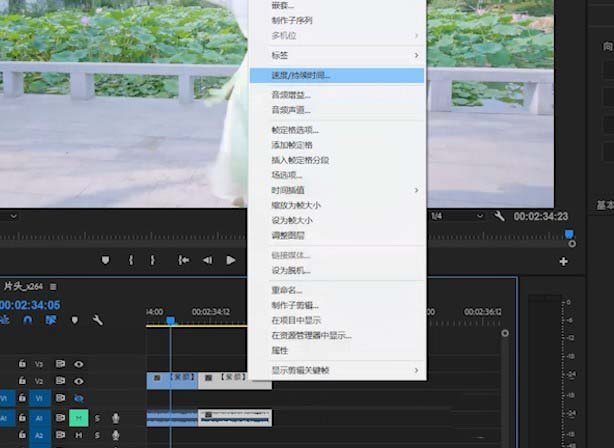 3、選中復制的素材,點擊鼠標右鍵選擇播放速度選項。