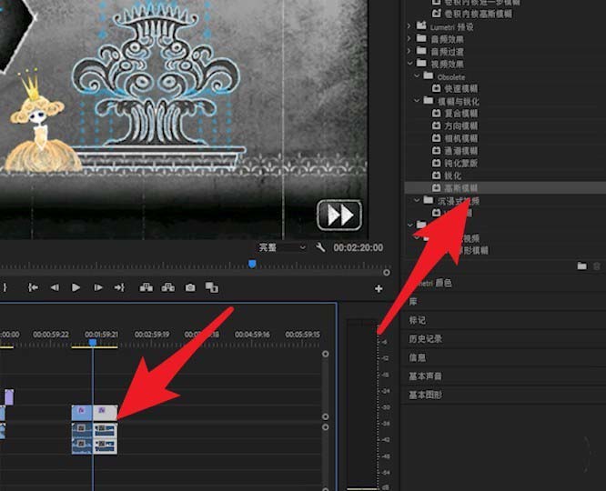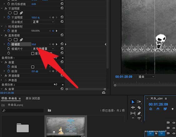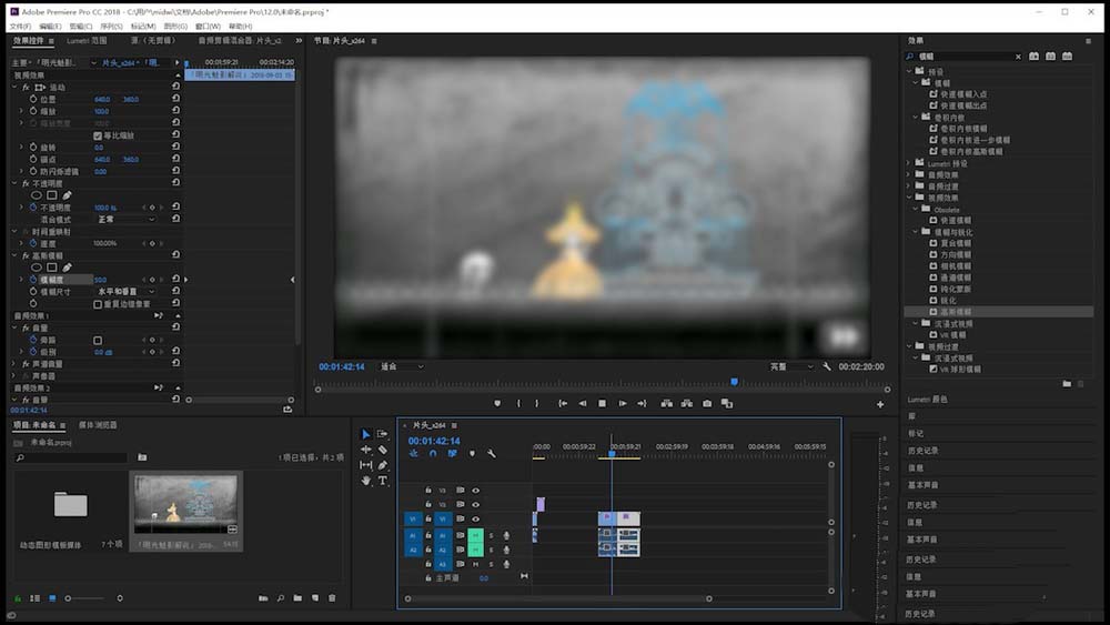 2、我們給視頻添加模糊效果,然后將視頻截斷。
